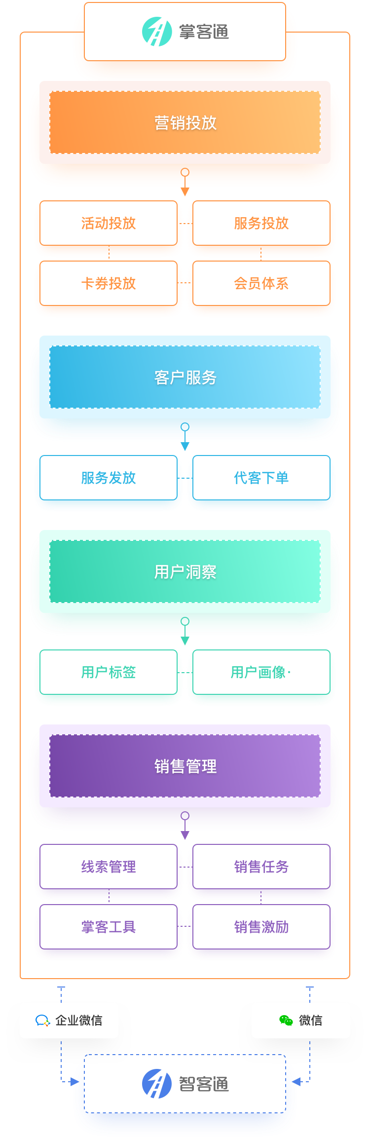 串联业务前后端,打通微信生态,通过私域经营提升用户服务、运营和转化效能,降低营销成本