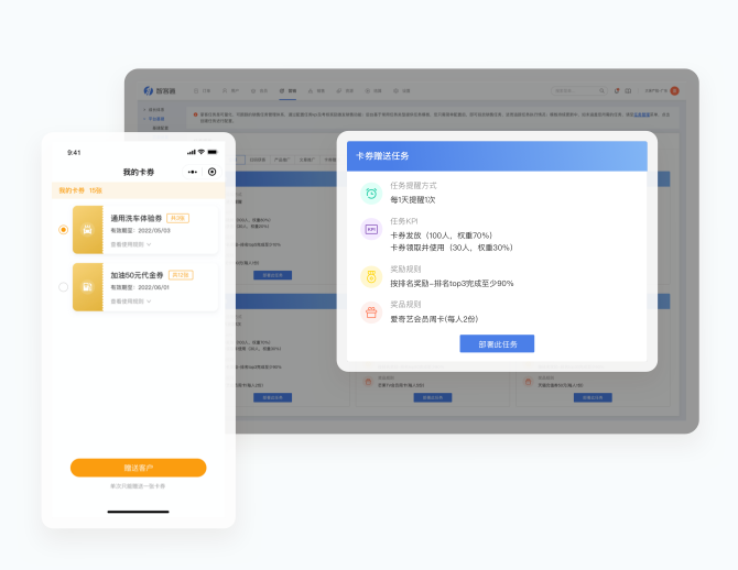 过销售渠道转发营销卡券/营销活动/营销文章等给用户,高效提升用户活跃度